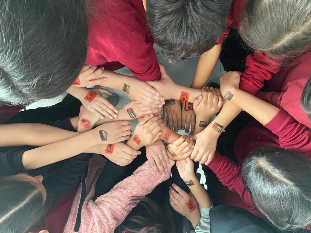 Öğrencilerimiz ayrıca, hazırladıkları sunum ve şiirlerle Filistin’de yaşanan insani acılara dikkat çektiler. Bahçemizde gerçekleştirilen koreografi çalışmasında ise öğrencilerimiz bedenleriyle “Filistin” ve “Gazze” yazılarını oluşturarak barış ve özgürlük çağrısı yaptılar.